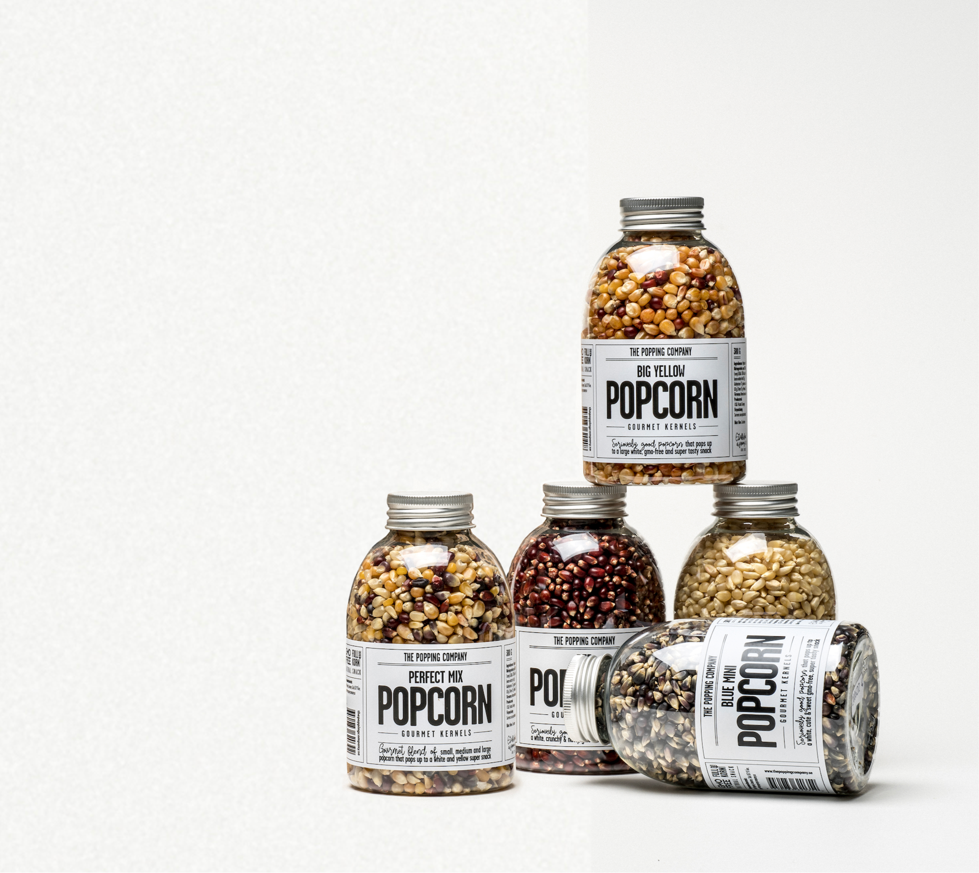 Noggrant utvalda popcornkärnor i olika färger, storlekar och texturer – varje sort ger en helt egen smakupplevelse.