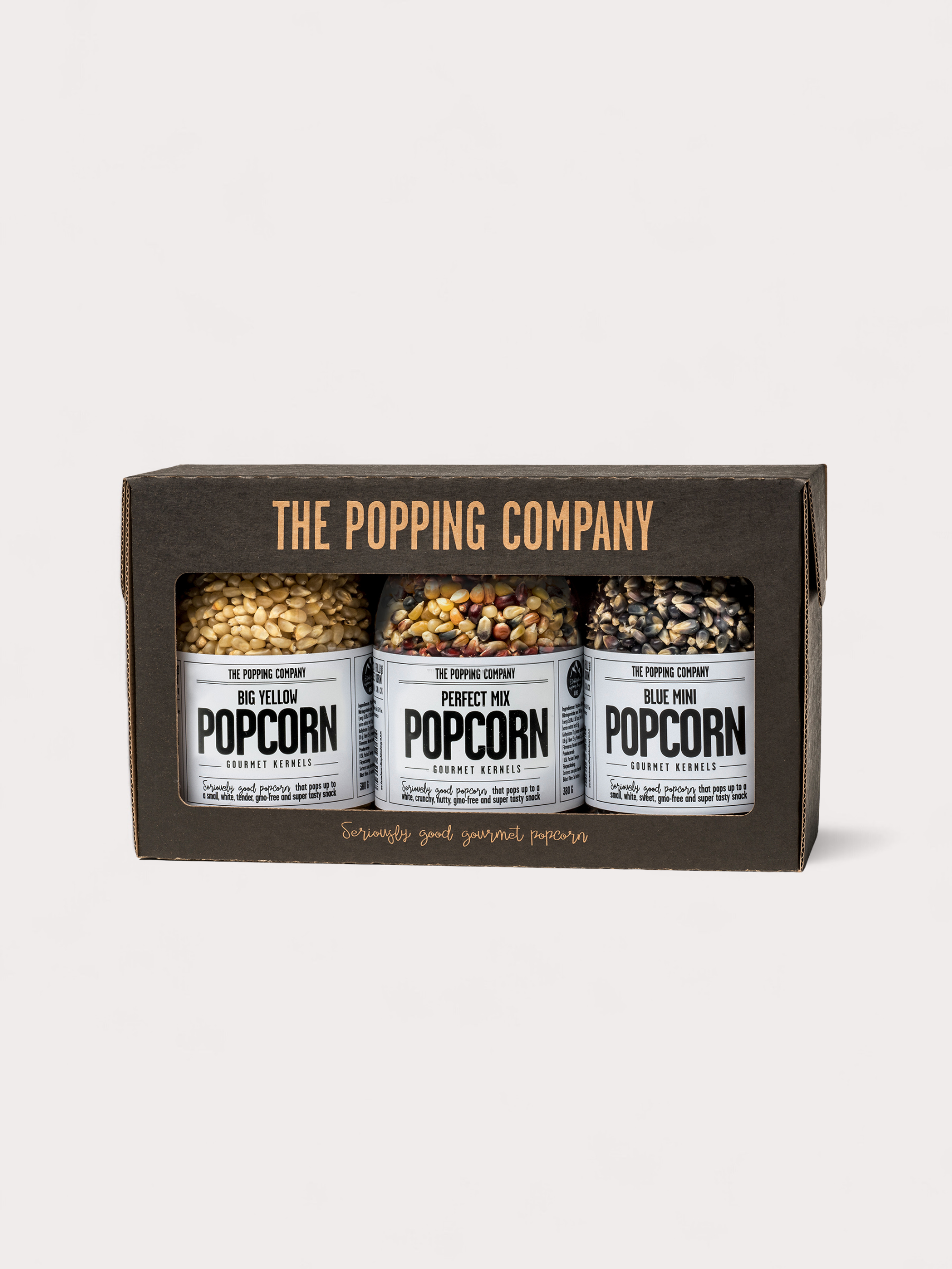 Ge en riktigt lyxig present med vår Stora Present. En presentförpackning med tre utvalda sorter av våra bästa gourmetpopcorn. Varje kärna är speciellt utvald för sin högsta kvalitet och unika smakprofil, vilket gör detta till den ultimata presenten för den sanne popcornälskaren. Alla sorter är självklart GMO-fria och utan tillsatser.