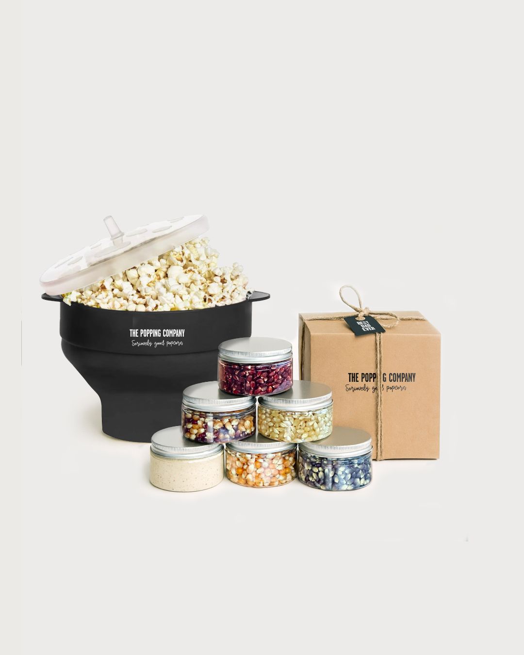 The Dad Kit är en genomtänkt fars dag-present fylld med våra bästa popcornsorter, vår prisvinnande krydda och vår bästsäljande mikroskål så han kan poppa dem enkelt hemma i mikron.